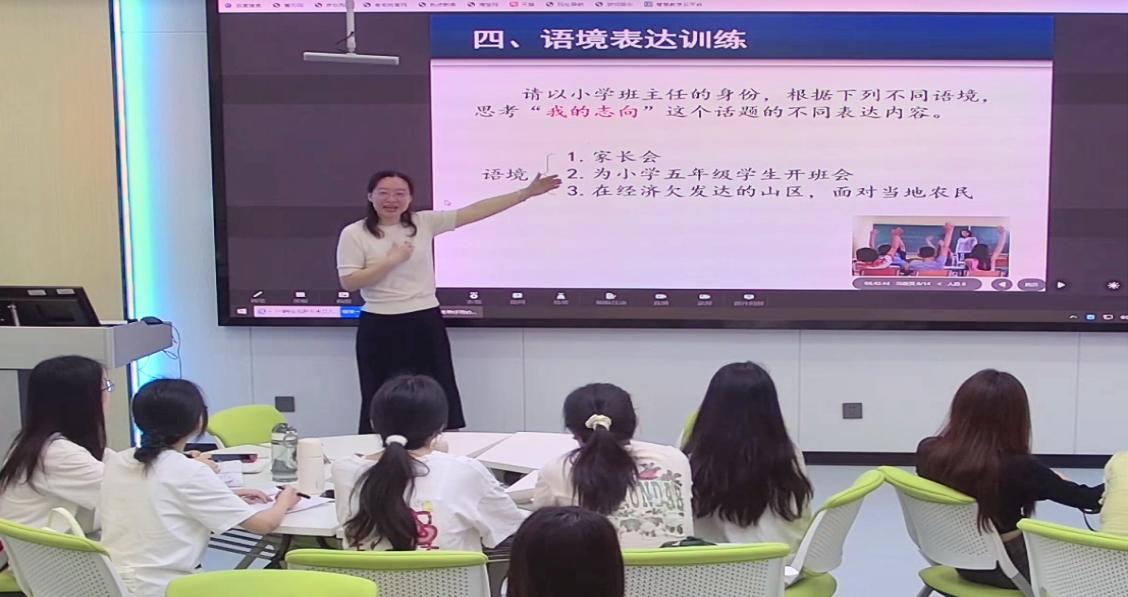 新文科强调打破学科壁垒,体现学科融合。教师口语课程融合了教育学、心理学、语言学等多学科知识,将相关的多学科知识进行资源整合,能更好地为教学服务,也能帮助学生在运用口语解决教育教学问题的训练中提升综合能力。如教学“教育口语——说服语”时,先出示教育教学案例情境,再要求学生讨论后设计说服语。之后的点评环节,可引导学生结合小学生的心理特点和具体的教育方法来分析学生设计的说服语是否合理有效。这就是通过心理学、教育学、语言学、逻辑学等多学科知识的融合来解决教育问题,从而提升学生的综合能力。